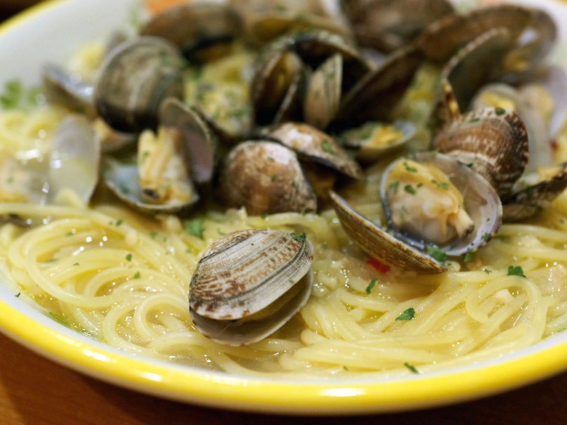 パスタに比べて確かにアサリの量がタップリ。アサリのワイン蒸しの中に麺が混じってるような感じが贅沢。チャリンチャリンと殻を器に積み上げながら、パスタも一緒にズルンとたぐる。塩にニンニク、赤唐辛子もピリリと味をひきしめる。