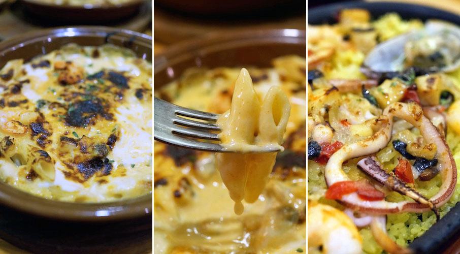 お開き前に〆の料理をと、シーフードのペンネグラタンとシーフードピラフ。