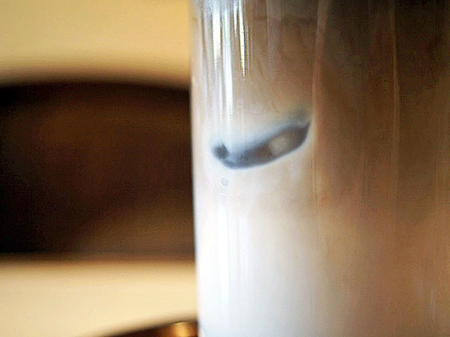 そこにそっと冷たくひやしたコーヒーを注ぎいれると白と茶色が層をなす。