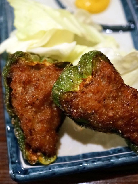 肉詰めピーマンを揚げたモノ。