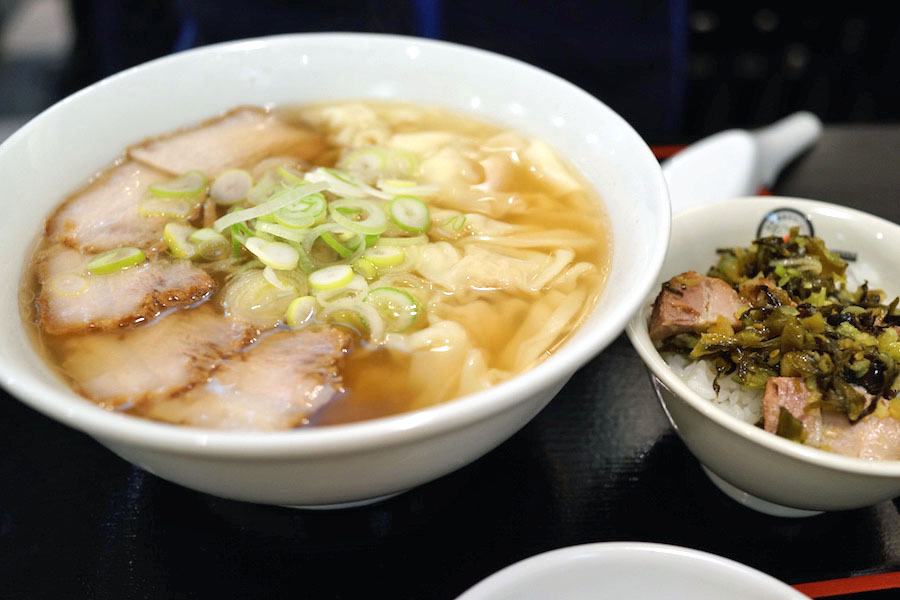高菜ご飯をお供にちょっと食べてみたらば、スープにワンタン、チャーシューと白いご飯の相性抜群。このラーメンを「麺抜き」でご飯のおかずに味わうことができたらどんなにステキだろう…、って思ったりした。