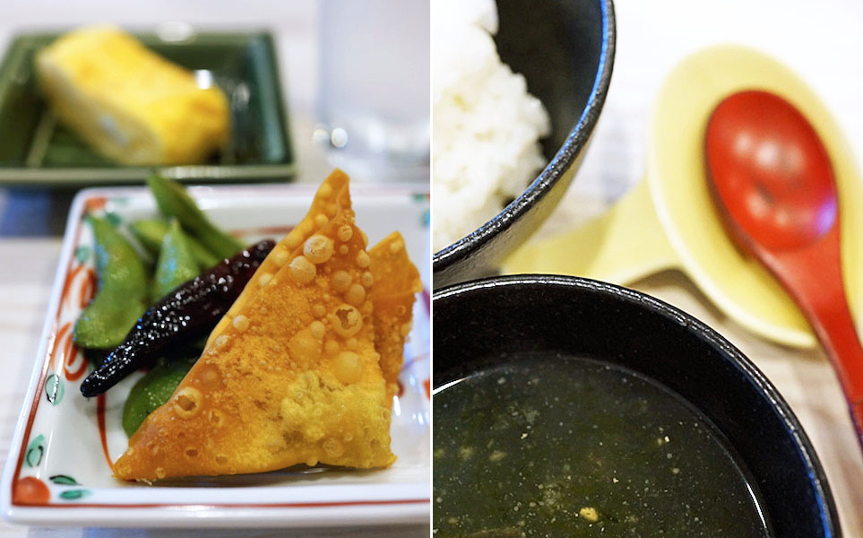 バリッと揚げたワンタンに醤油の風味をつけた枝豆。中華風の出汁を使って作った出汁巻き玉子とどれもが気がきいている。