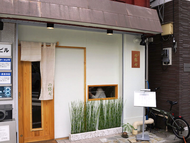 とは言え月曜休みの祝日で、開いてるお店が少ないコトにしょうがないやと思いつつ、そういえば、先日、銀座の矢部さんにこの界隈に「の弥七」という店ができたんですよ…、と聞いていた。さがして行ったら今日も営業。そこにする。