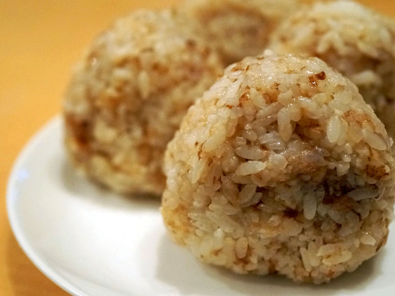 昨日の夜。3合炊いた土鍋ご飯の残りを使っておむすび作る。夜更かししようと思ってて、夜食がわりになればいい…、と。