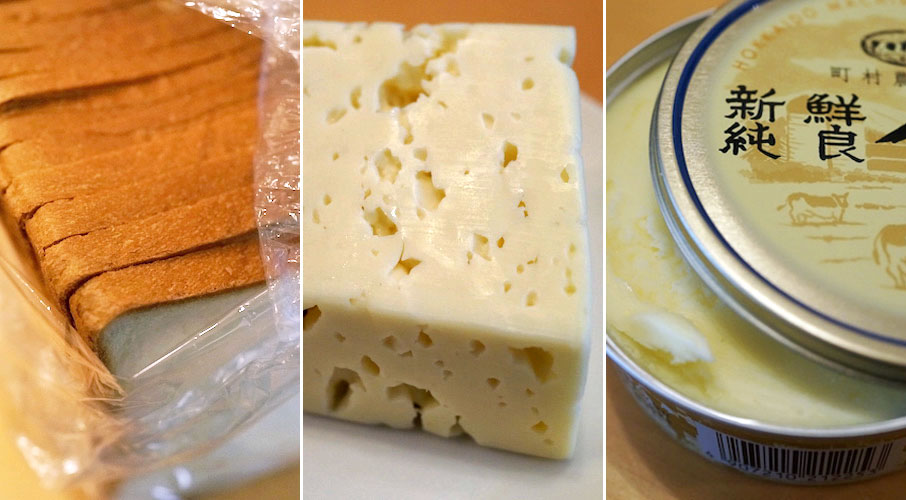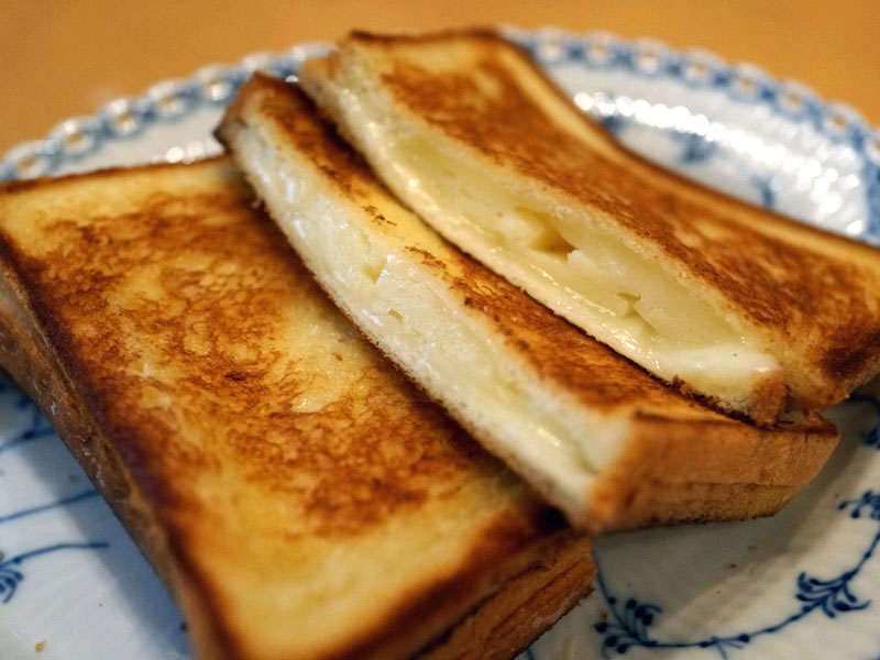 焼いておいしくなるはずの発酵バターを使って焼いたパンを薄切りしてもらい、それからチーズ。