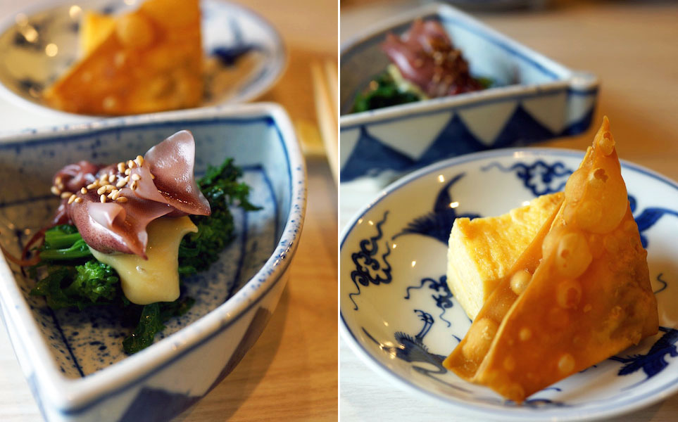 揚げたワンタン、中国風の鶏のスープで作った出汁巻き玉子はここの定番料理のひとつとなった。