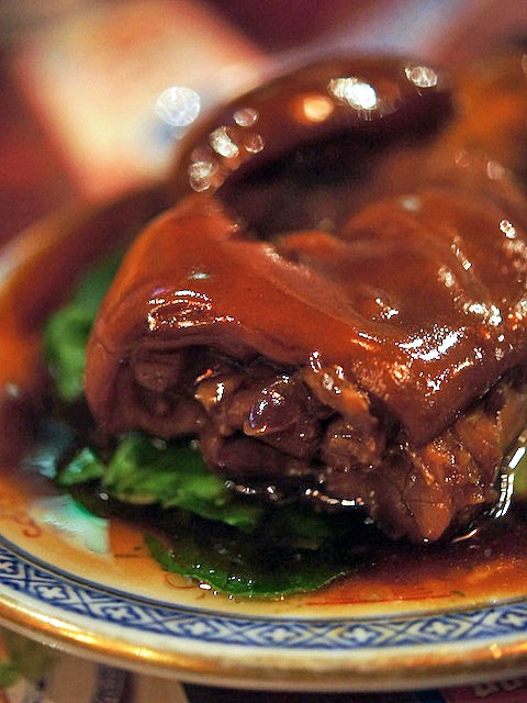 香りはけれど醤油の香りで、ワインで豚足の臭みをとったところで醤油を注ぎ込み、それでじっくり煮込んだのでしょう。