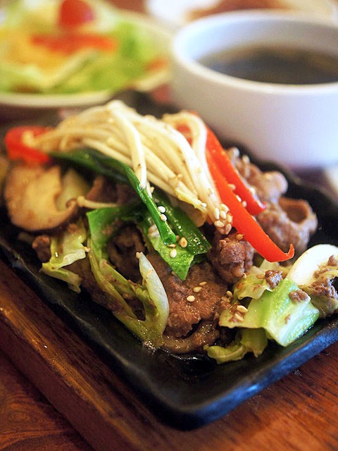 ココにしかない料理やセットがあるのがまたありがたく、今日はプルコギと石焼ビビンパのセットにします。