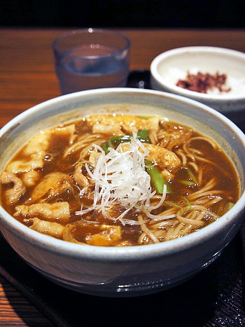 ちょっと変わったモノが食べたくて、それでカレー南蛮そばを選んでたのむ。