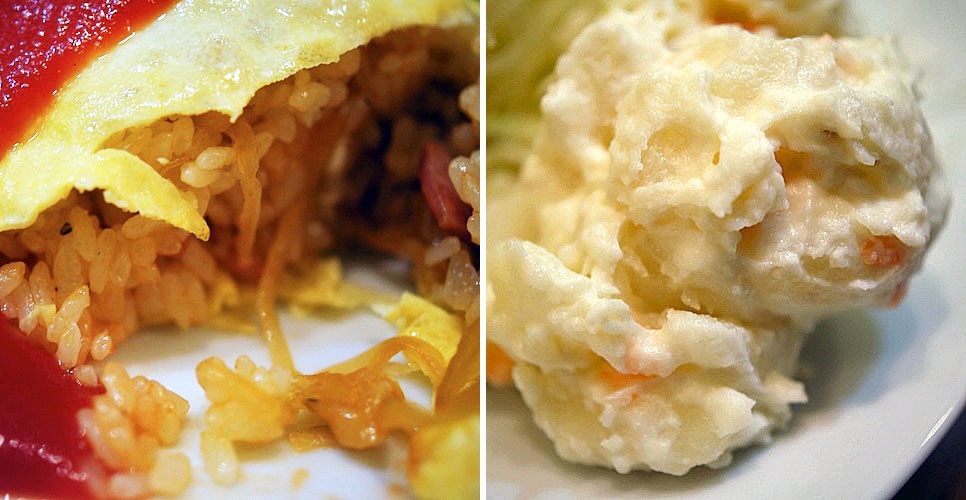 中に閉じ込められたケチャップライスは、玉ねぎにハムで作られたとてもシンプルな出来栄えで、具材を食べるのじゃなくお米を食べるためのレシピ。