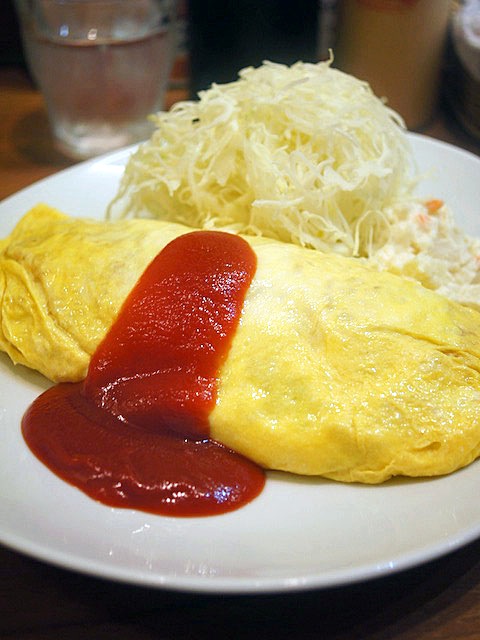 油をなじませたフライパンでこんがり焼けた薄焼き卵でクルンと包んで仕上げる、これが正真正銘、オムライス。