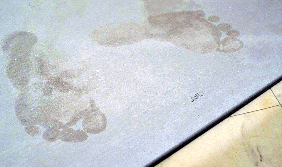 吸水性の高い珪藻土を使ったモノで、足を乗せるとピトッとマットが吸い付くような不思議な感触。