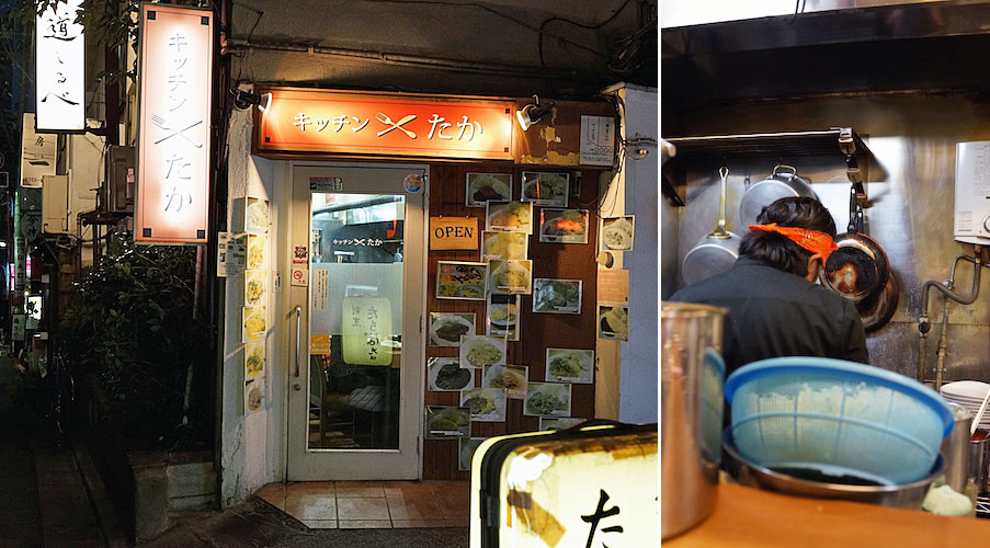 夜を近所の「キッチンたか」。ひさしぶりです。