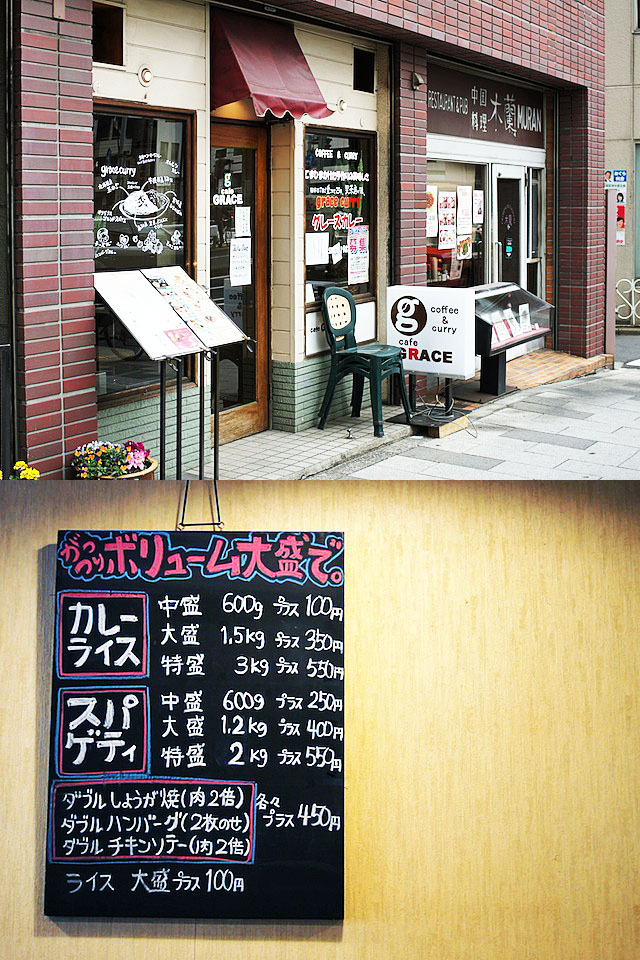 先日きたとき「しばらくお休み」と貼り紙使って隠してた「大盛り、特盛り」のメニューが復活。