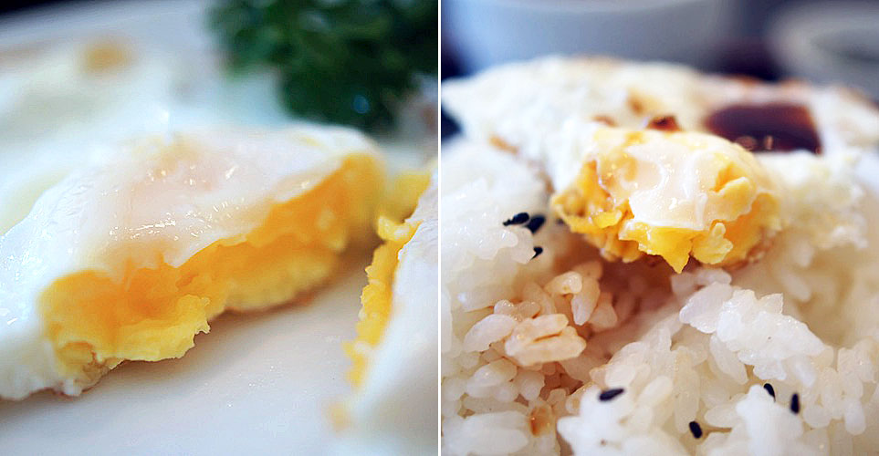 ご飯に乗っけて醤油をタラリ…、ご飯と一緒にハフっと食べると白身がプルンと舌を滑って、黄身がトロンとなめらかになる。