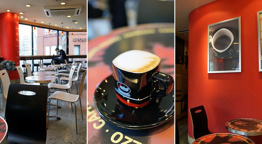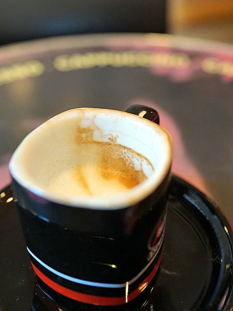 カップの内側にエスプレッソが描く層なす茶色い筋が、時間をたのしく無駄遣いした証のようでニッコリとなる。