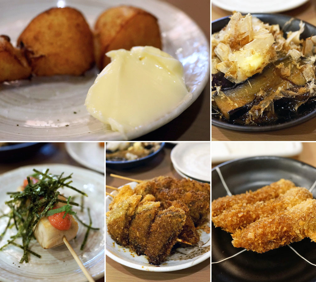 そしてここの売り物。串揚げ、それから串焼きをあれこれ食べる。