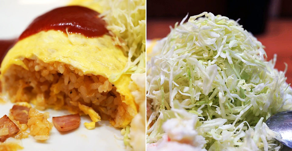 ご飯の中には刻んだ玉ねぎ、角切りのハム、スライスをした缶詰マッシュルーム…、オムライスの具材は昔からこれに決まっているんだよ…、と、みていて胸がすく思い。