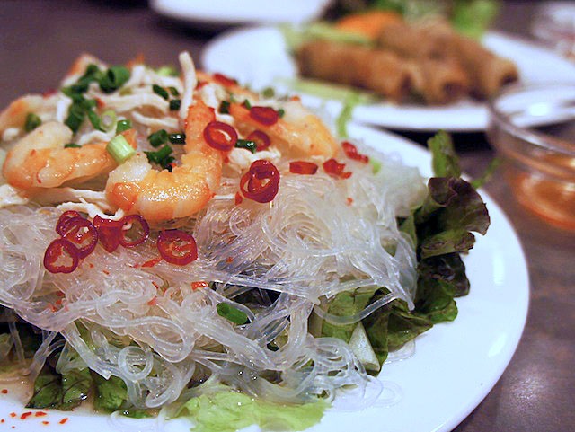 生の野菜の上にタップリ、甘酢であえた春雨をドサッ。