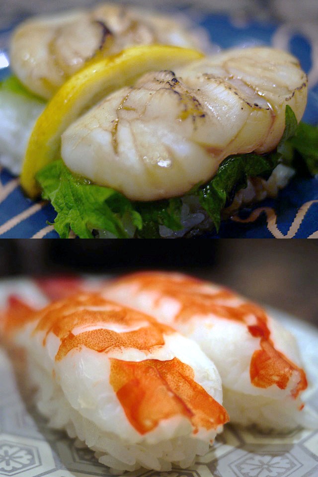 ホタテを炙ってタレつけて磯辺焼きのようにしたのを乗っけた寿司やら、