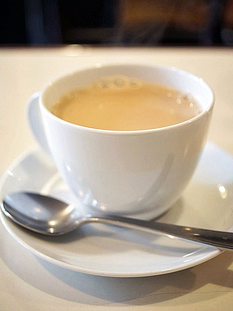 ご飯を最後の一粒までもお腹にキチンと収めたら、お待たせしましたってカフェオレがくる。