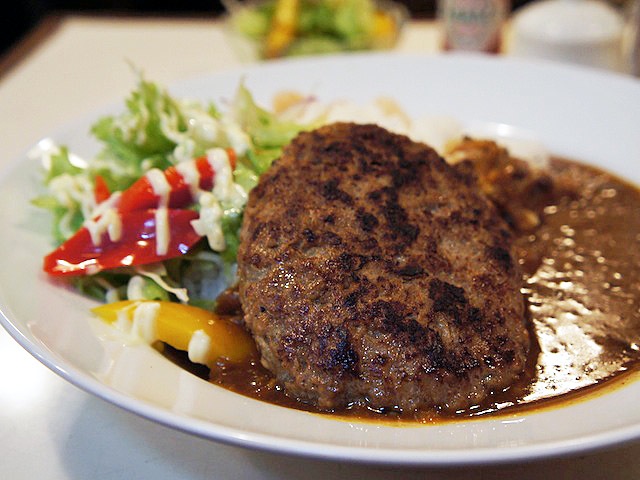 ハンバーグカレーってメニューがあって、それをたのんでみたらばこのハンバーグがまたおいしい。