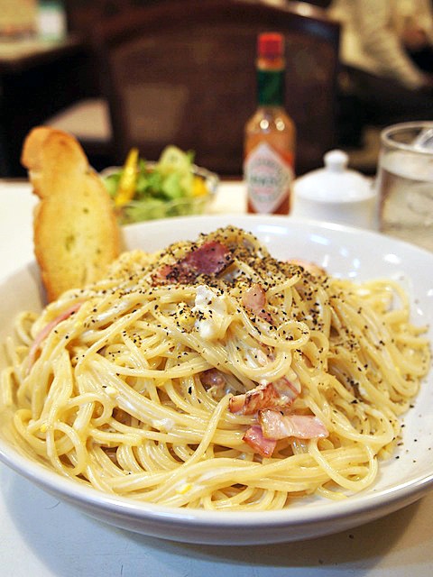 しかもカリカリになるまで炒められてて、そのベーコンを炒めた脂がクリームソースに混じってドッシリ。