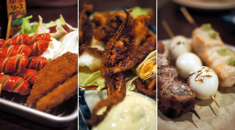 串にさし油に落とした揚げ物で、表面カリッと中はサクサク。