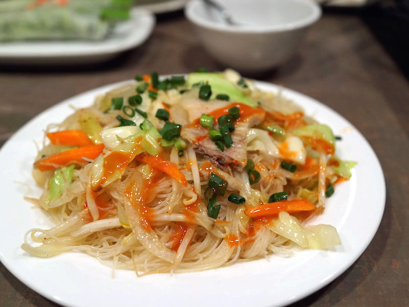 それからビーフン。タップリの野菜とゆで豚と一緒に炒めた素朴なレシピ。