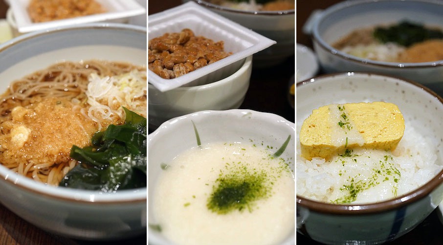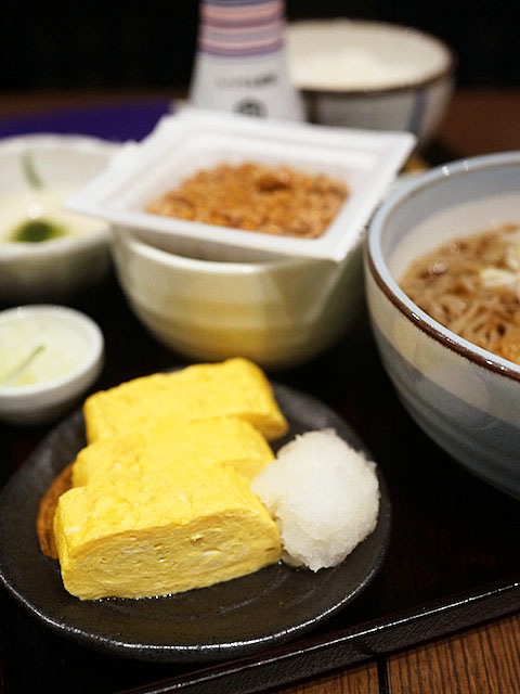 出汁をタップリ含んだふっくら厚焼き玉子を、蕎麦の上にそっとおきゴクゴクスープを吸わせてやって、ご飯の上にのっけてそこに山芋とろろ。