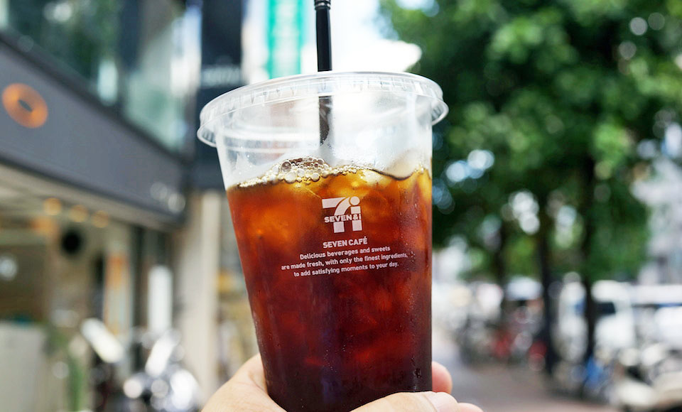 歩いて歩いて、水分補給。セブンイレブンのアイスコーヒーで喉と体を潤しましょうとお店に入る。