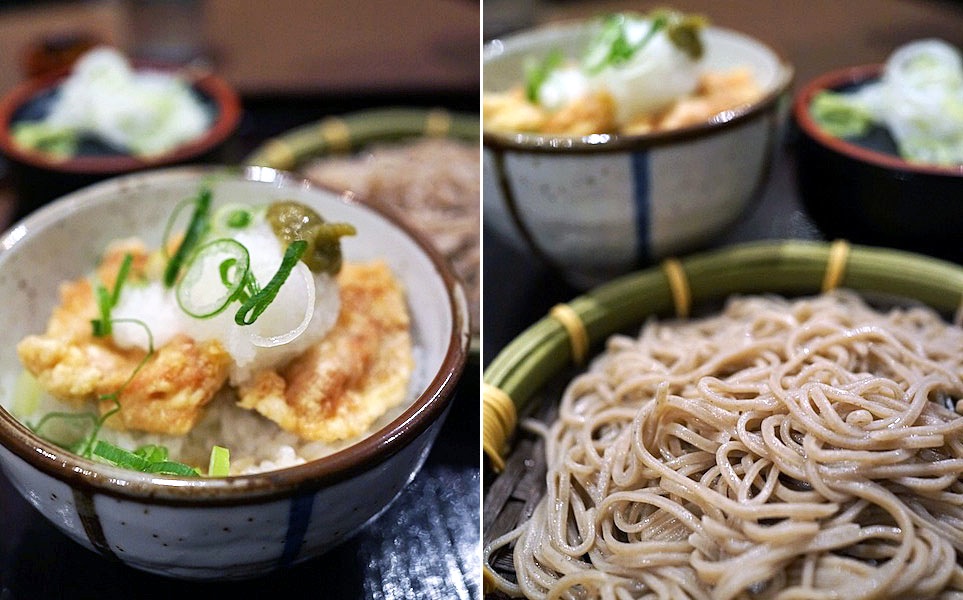 お米ご飯を食べたいよねぇ…、ととり天ご飯がセットでついてるせいろの蕎麦をたのんで分ける。