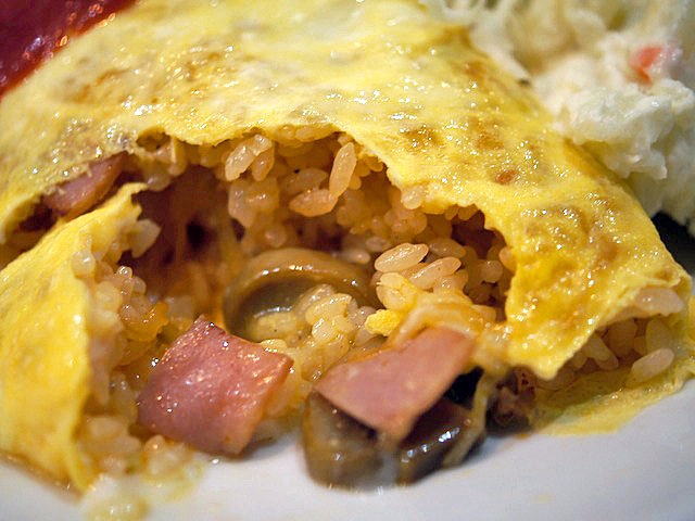 けれど決して焼き過ぎぬよう、ほどよき水気を保ったままで焼きあがった玉子の上に、ケチャップライスをのっけてくるむ。