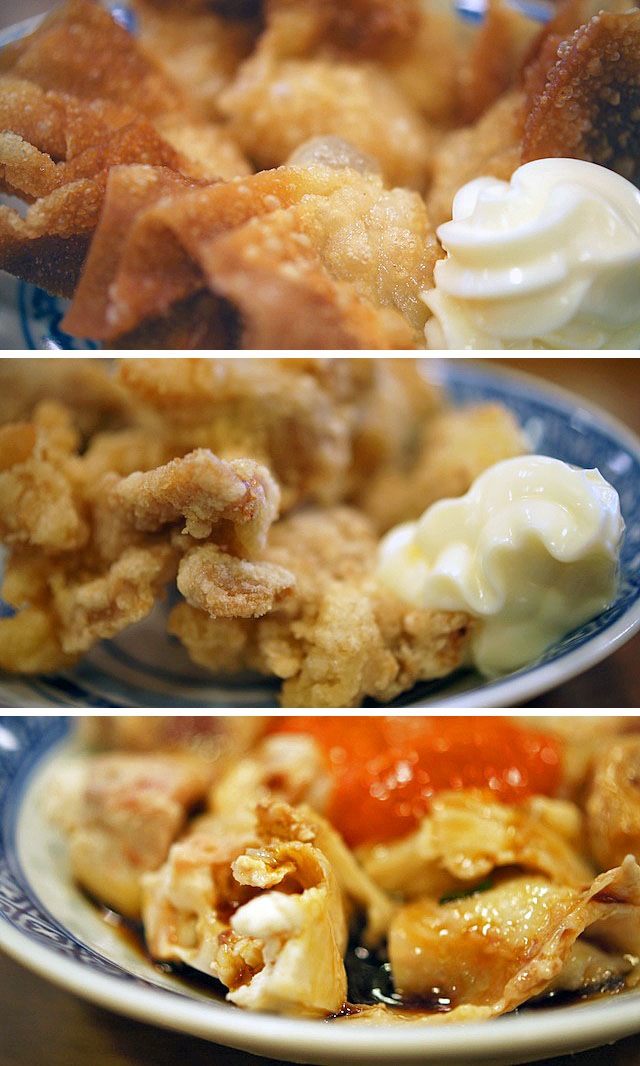 揚げワンタンはサクサクパリパリ、食感たのしい。