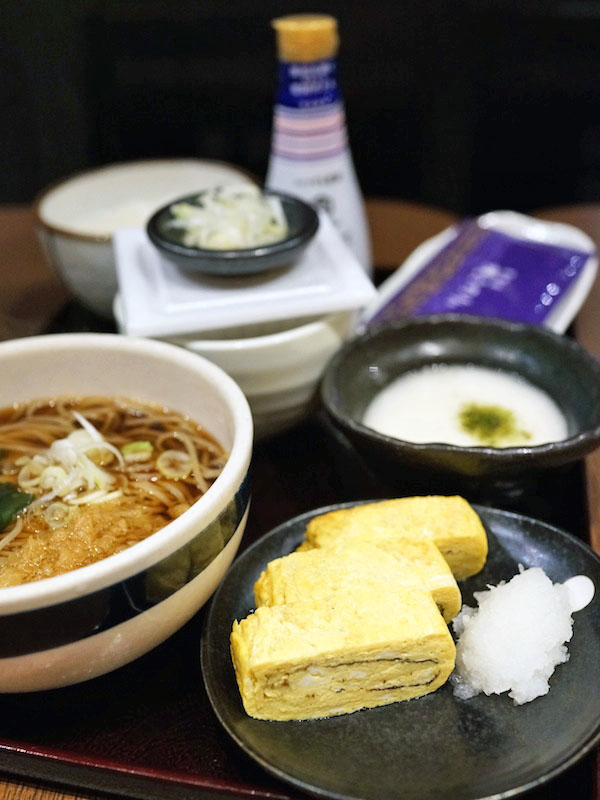 朝には蕎麦を汁代わりにして定食が何種類かあってたのしい。