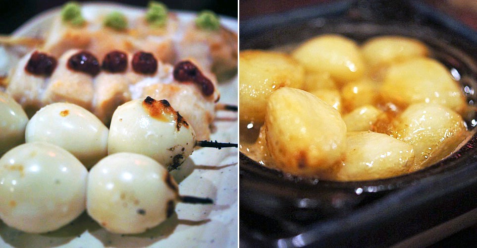 茹でた玉子を串にさし、塩水をキリフキしながら焼き上げた、だから塩のうま味がしっかりのっかってシットリ焼けてるこれがおいしい。