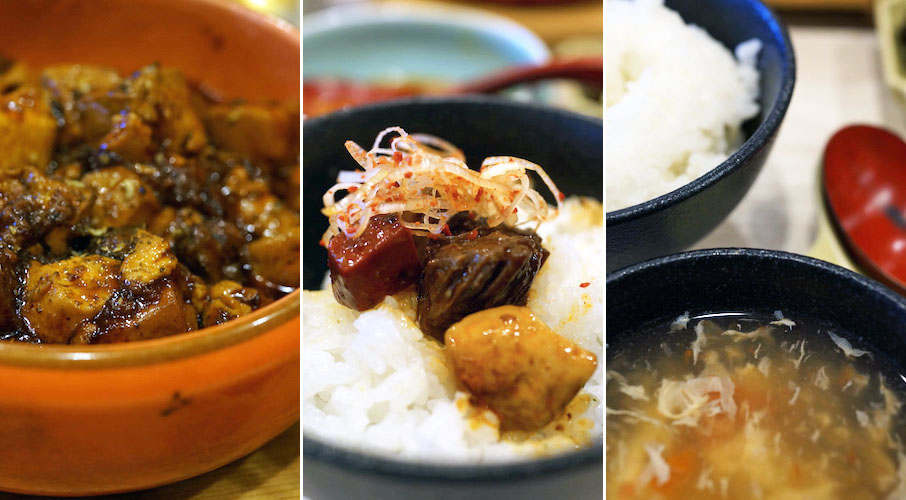 キリッと辛くてそこに肉のドッシリとした味と風味がまじりこむ。赤こんにゃくのクニュクニュとした食感たのしく、山椒の痺れも程よくビリリ。