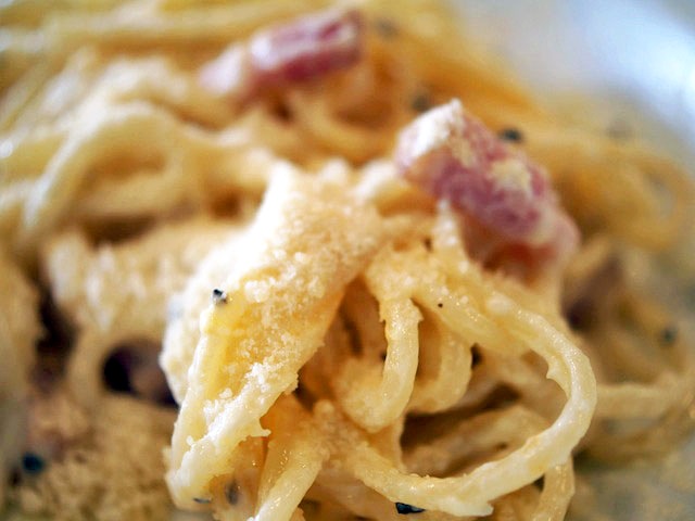 カルボナーラ=炭焼き小屋風って名前の由来の黒胡椒。