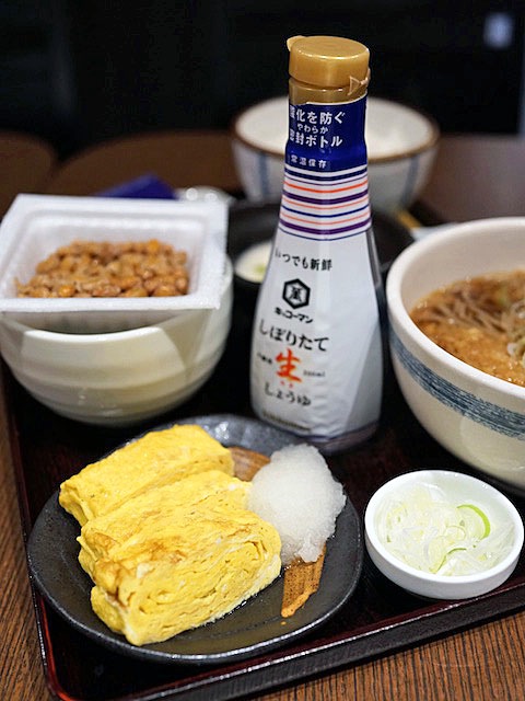 蕎麦屋のフックラ卵焼きがメインの朝の定食もらう。