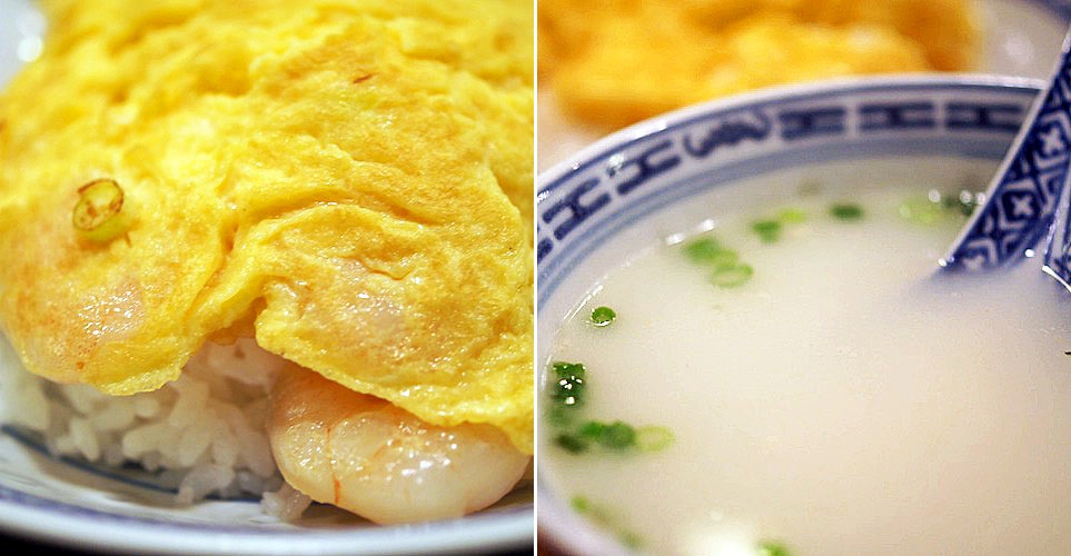 具材は油通ししたエビ…、よく溶いた玉子をたっぷりの油の中に流しこみ揚げるというより油で煮込むように仕上げたサクサク、フックラしたエビ玉子。