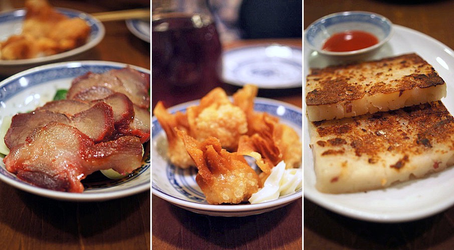 叉焼たのしむと、香港風の表面赤い蜜焼きをスライスし、スープで軽く温めてオイスターソースで風味をつけたのがやってくる。