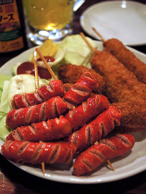 赤ウィンナさんをメインに、あれこれ揚げ物を。