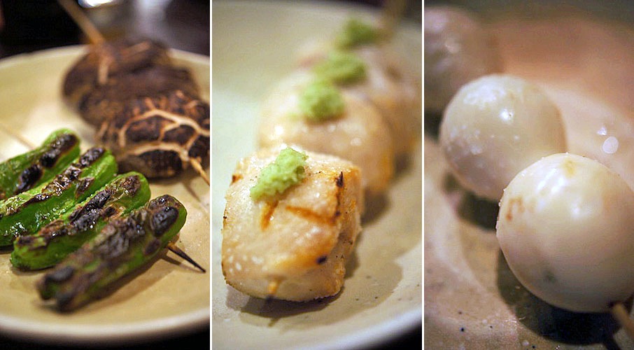 うずら卵も鶏のうち…、ニワトリの玉子にこうして串を打ち焼いたとしたらこれほどありがたい料理になるのか、かなり疑問に思えるほどに、口にやさしいサイズとプチュリとはじけて黄身がトロンとでてくるこの食感はかなり独特。