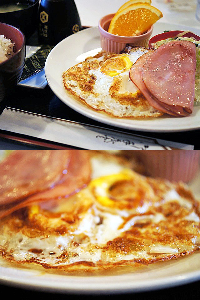 ボクの中で「目玉焼き」というのはすなわちハムエッグのコトと思い込んでて、それで当日。