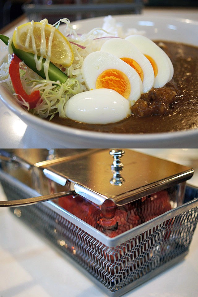 玉子一個を茹でたのがつき、カレーのルーがトロンとのっかる。