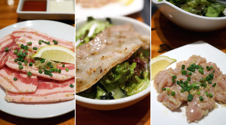 ロースにカルビ、中落ちカルビと三種類。ロースは赤身とはいえほどよく脂がのって、甘めのタレが焼くとキレイに焦げ目になってカラメルっぽい風味が旨い。