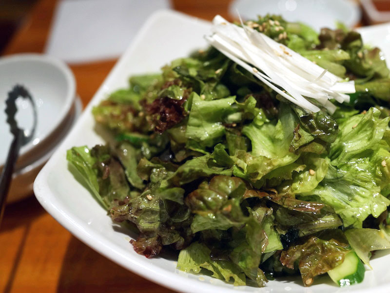 オモシロイのが、普通の野菜サラダよりダシをかけて軽くもんで味整えた、おひたしみたいな焼肉屋さん的こういうサラダは、バクバク、おいしく味わえる。