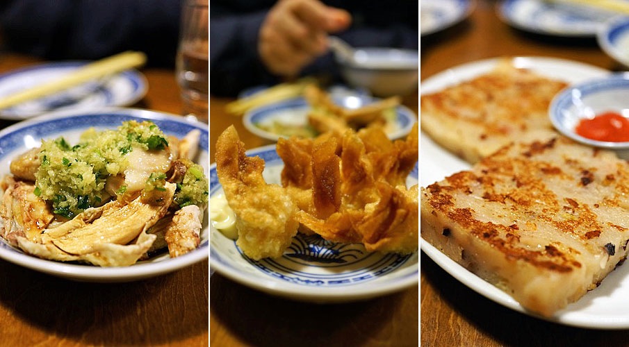 蒸し鶏に生姜ネギソースをかけたもの…、刻んだネギに生姜をすりおろし、油をなじませ作ったソースが、それ自体で料理のごとくおいしさで、シットリとした蒸し鶏が奥歯でバサッとほぐれるところにしゃっきりとした食感くれて、しかも爽やか。