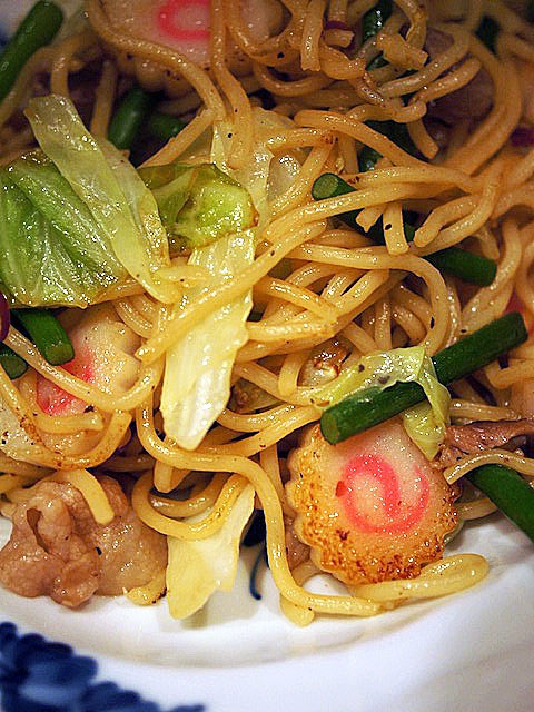 ちゃんぽん用の太麺があり、それを使って〆に焼きそば焼くことにした。