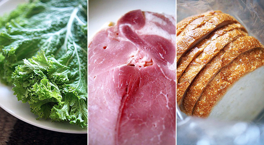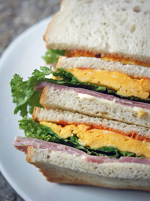 マヨネーズ、ハムに葉っぱに卵焼き。